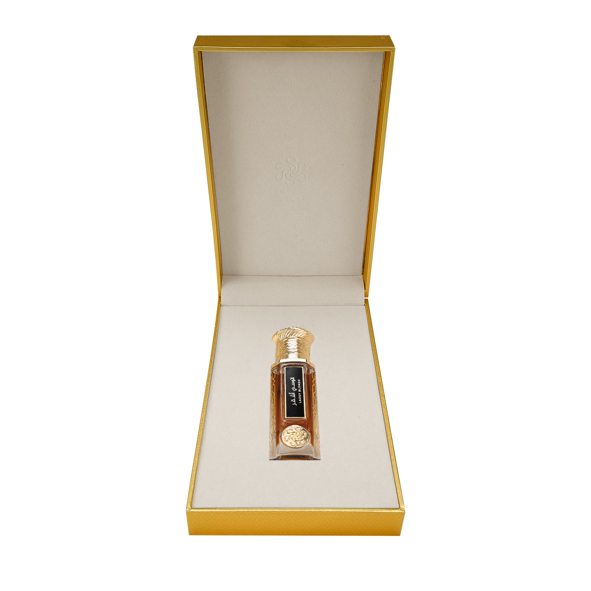 عطر طبيعي مكون من دهن لاوسي اشقر حيث تم أستخدام دهن لاوسي اشقر وتحويله ومعالجته لتتناسب مع آداء البخاخ ليساعد على توزيع ونشر جزيئات دهن لاوسي اشقر بنسب تساعد على ثبات العطر الذي يحتوي على خلاصة دهن لاوسي فوسو اشقر ويتميز بلمحات جلدي - ترابي تبغي - خشبي قديم